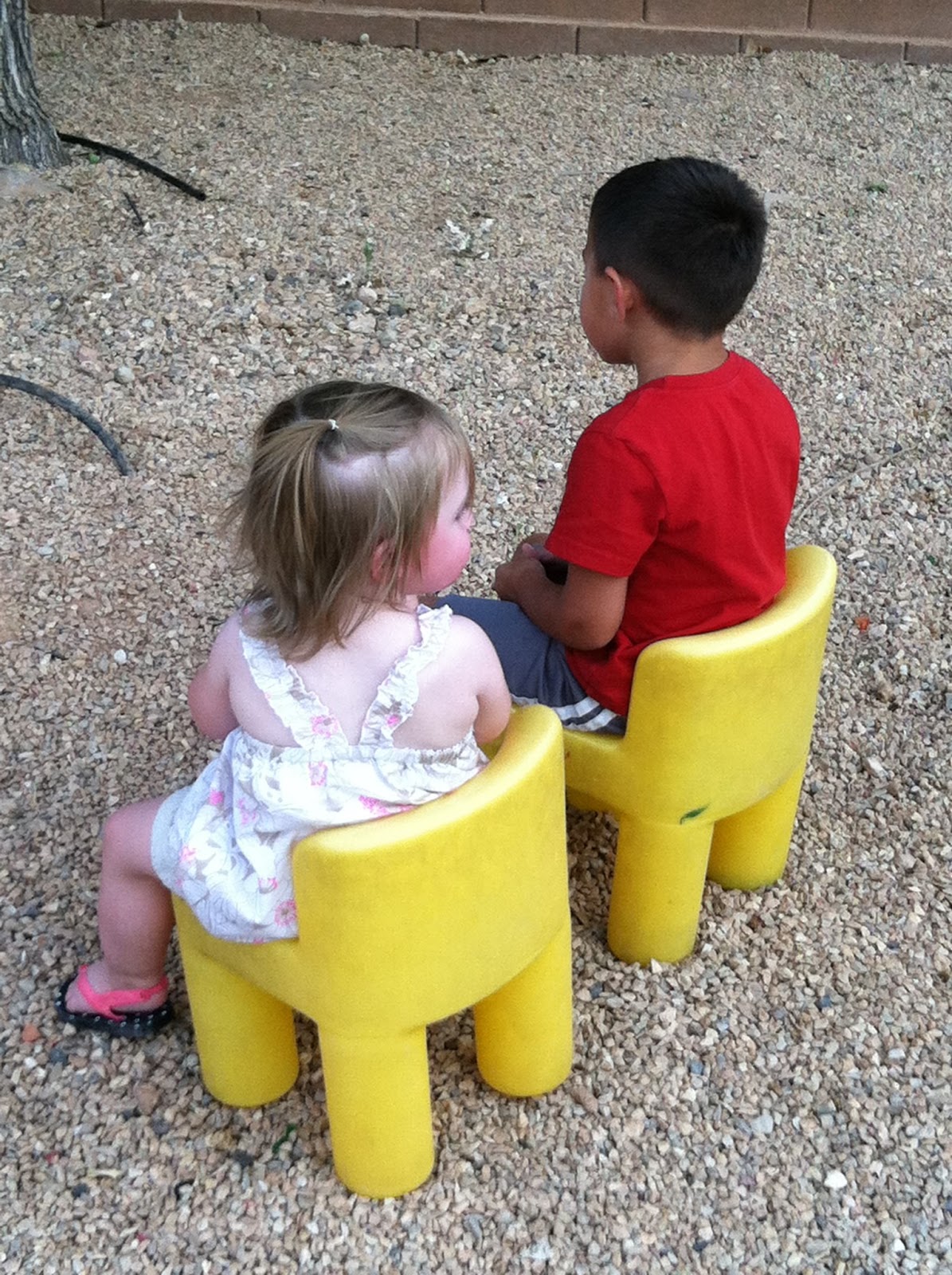 I helped them clean out their pool and Nate watched Brookie for me. He had set up a couple chairs for them, and when I took this picture they were just sitting there talking.